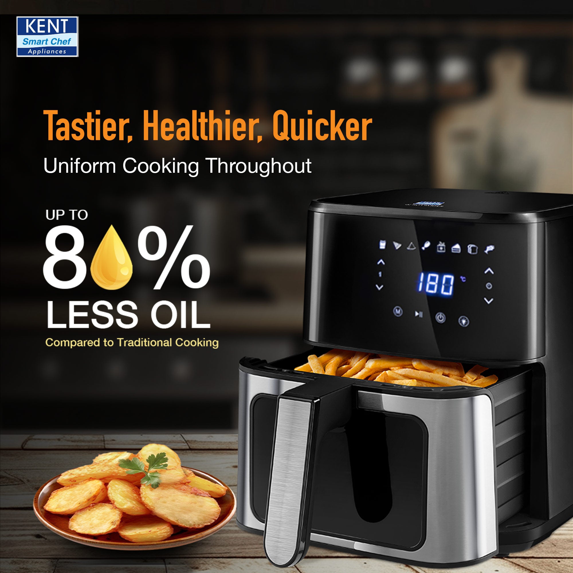 - Up to 80% less oil usage: Due to high speed air circulation your snack will consume 80% less oil than the traditional method.