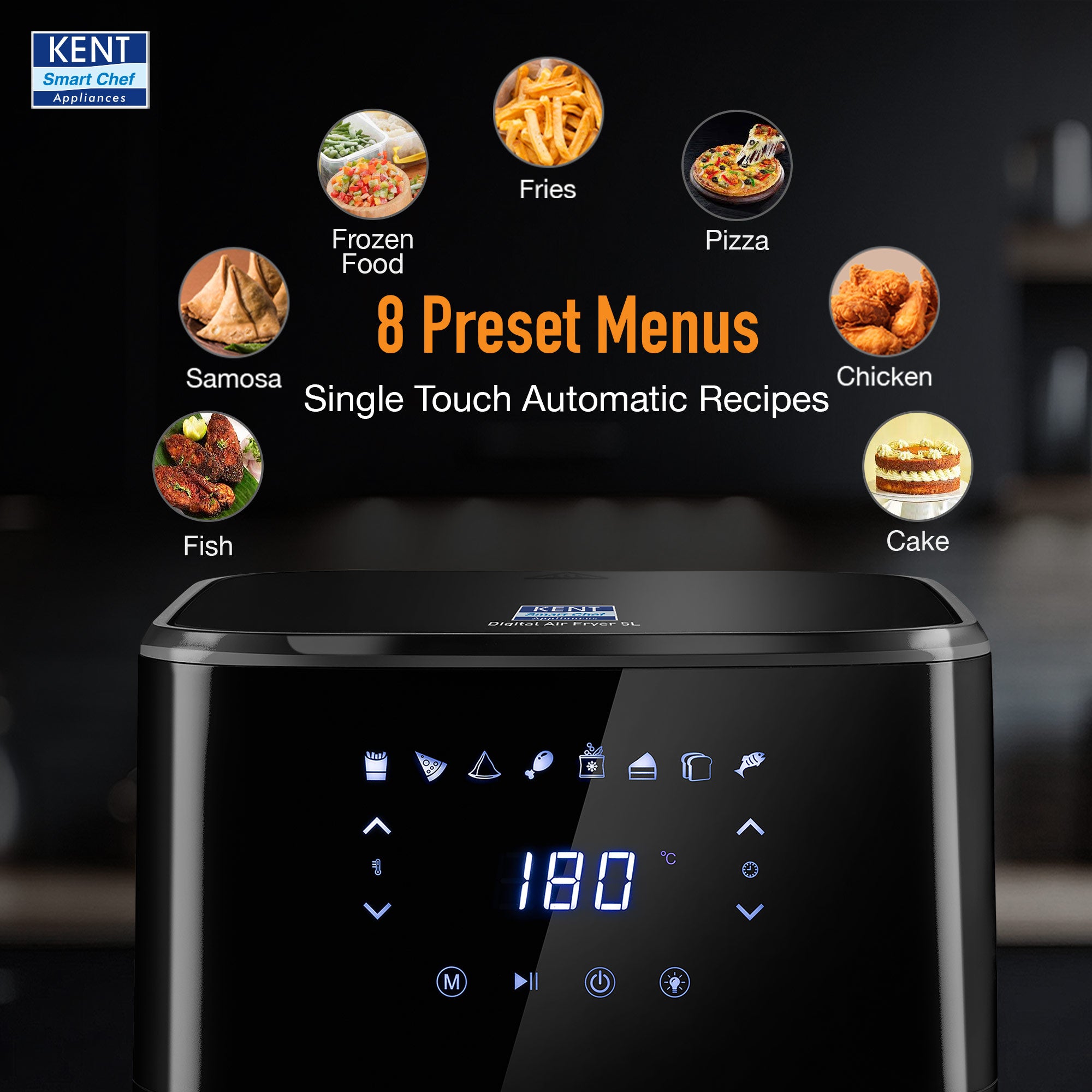 - 8 Preset Menus: The air fryer comes with preset menu like french fries, chicken wings, pizza, samosa, cake, fish, vegetables & paneer tikka.