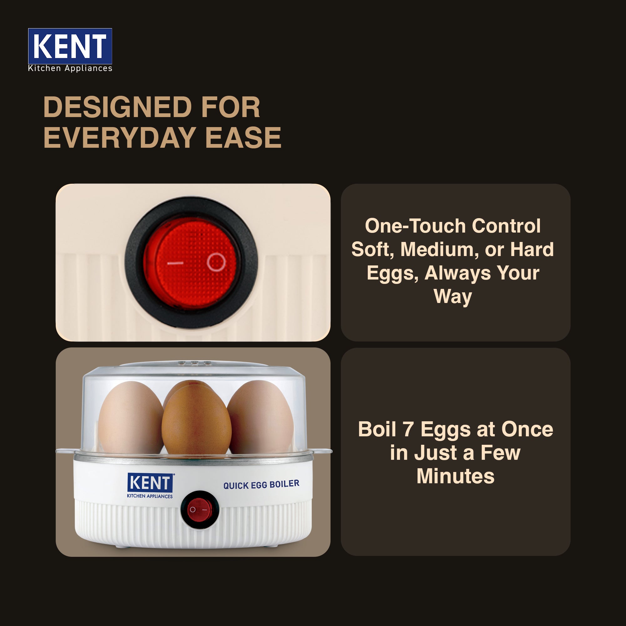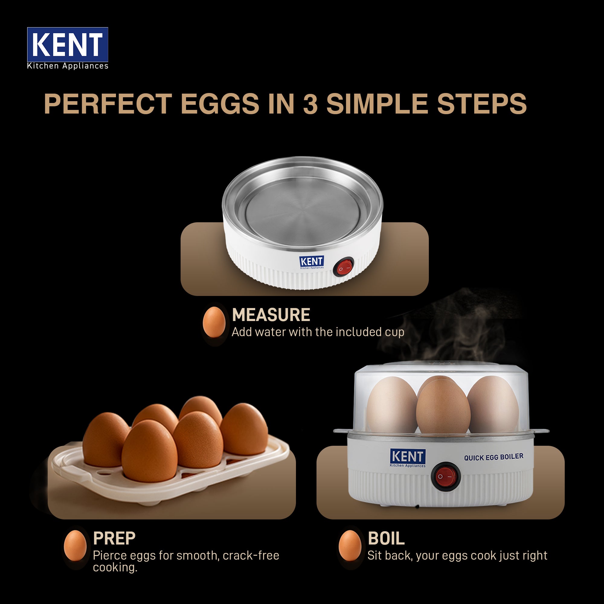 - Accessories Available - KENT Quick Egg Boiler comes with a needle pin, so you can pierce them easily before boiling. The measuring cup available lets you measure the correct amount of water to be used according to your preference and number of eggs you want.