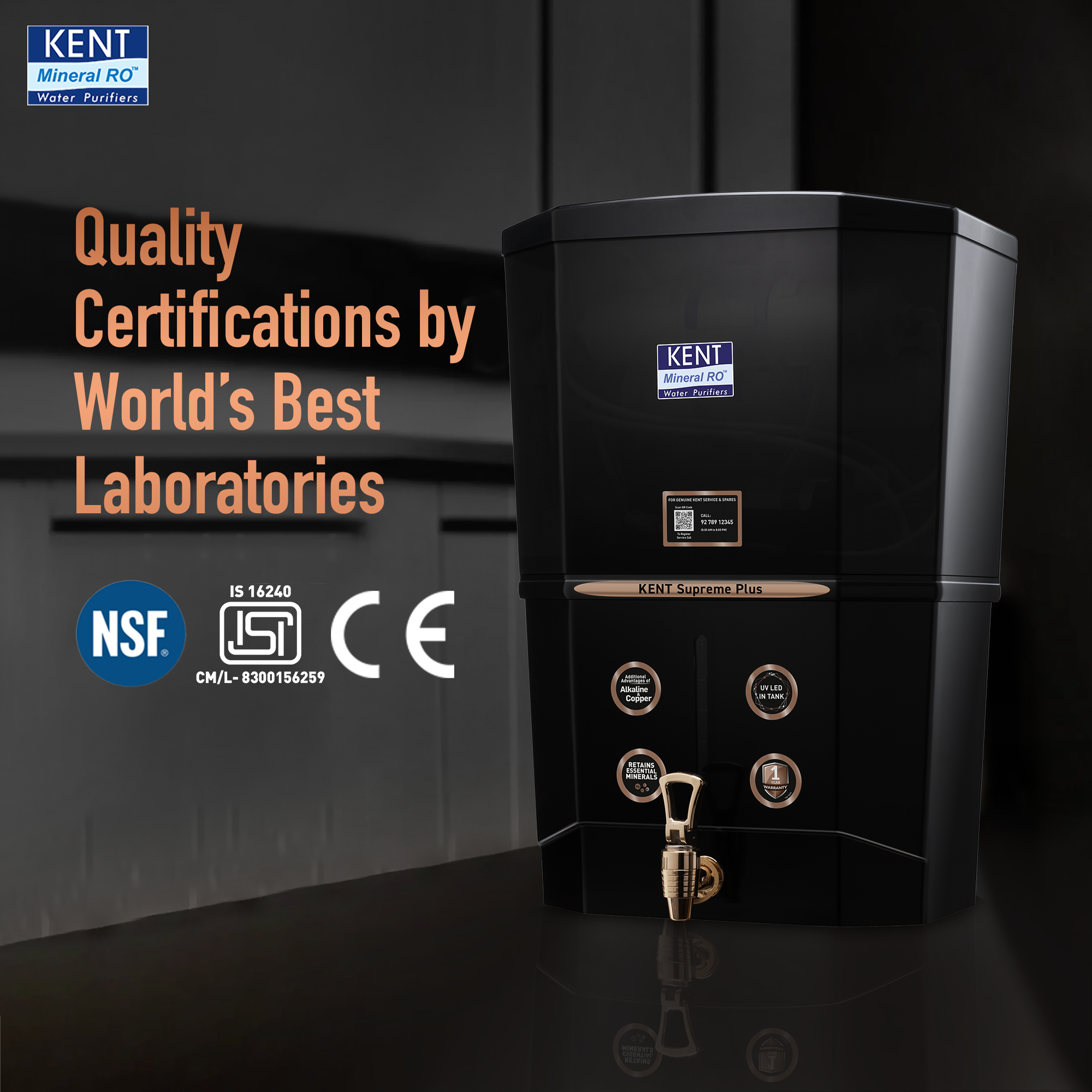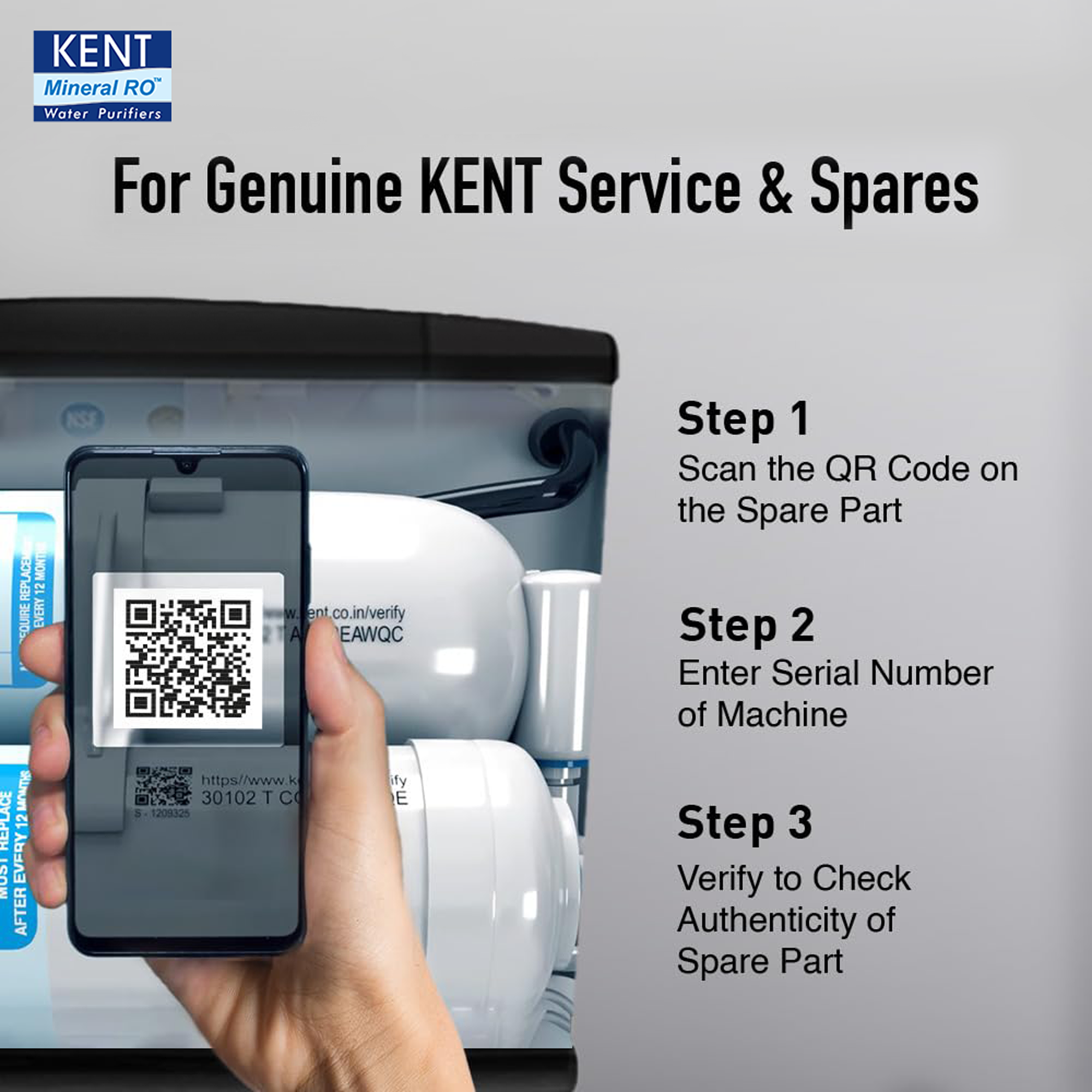 - Free Service Plan – Includes the KENT genuine service plan with free installation, routine health check calls, and unlimited repair visits for one year from the purchase date. Enjoy easy access to India's largest service network, available across 19,000+ pin codes through WhatsApp, mobile app, toll-free number, and email—just a click away