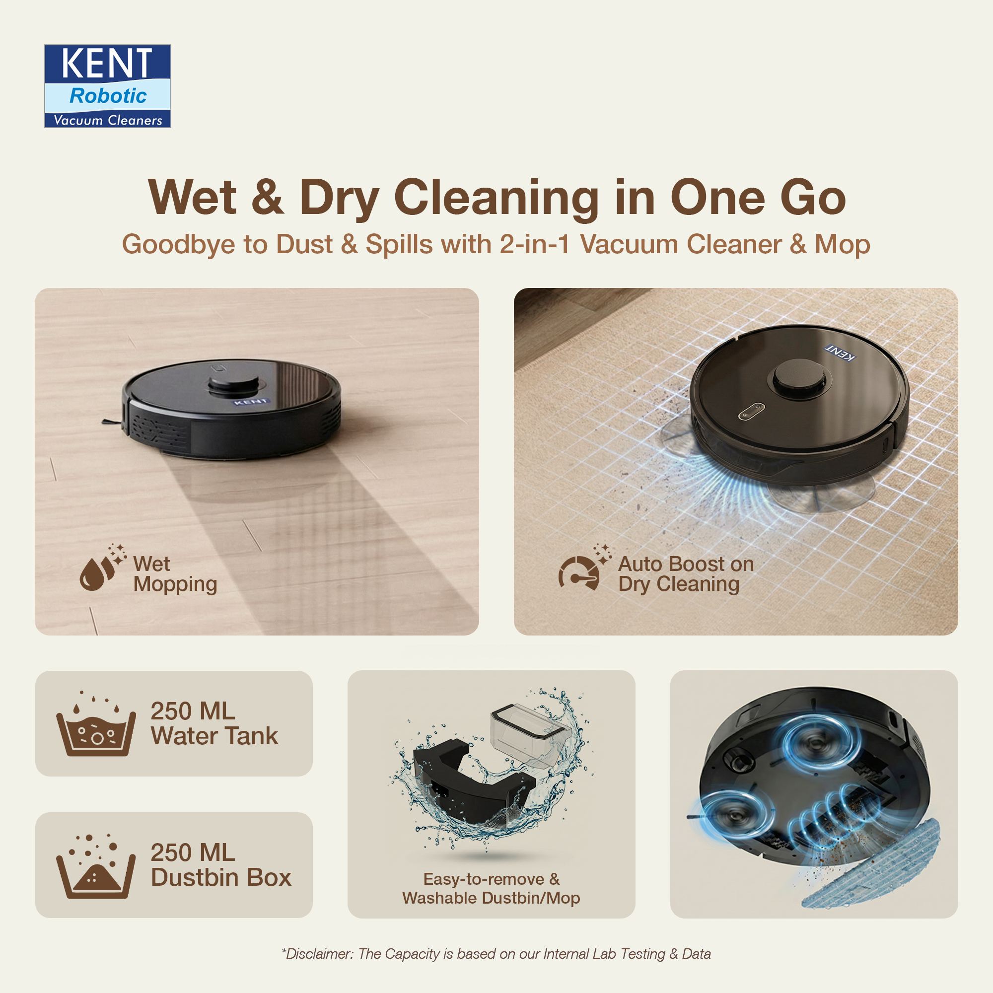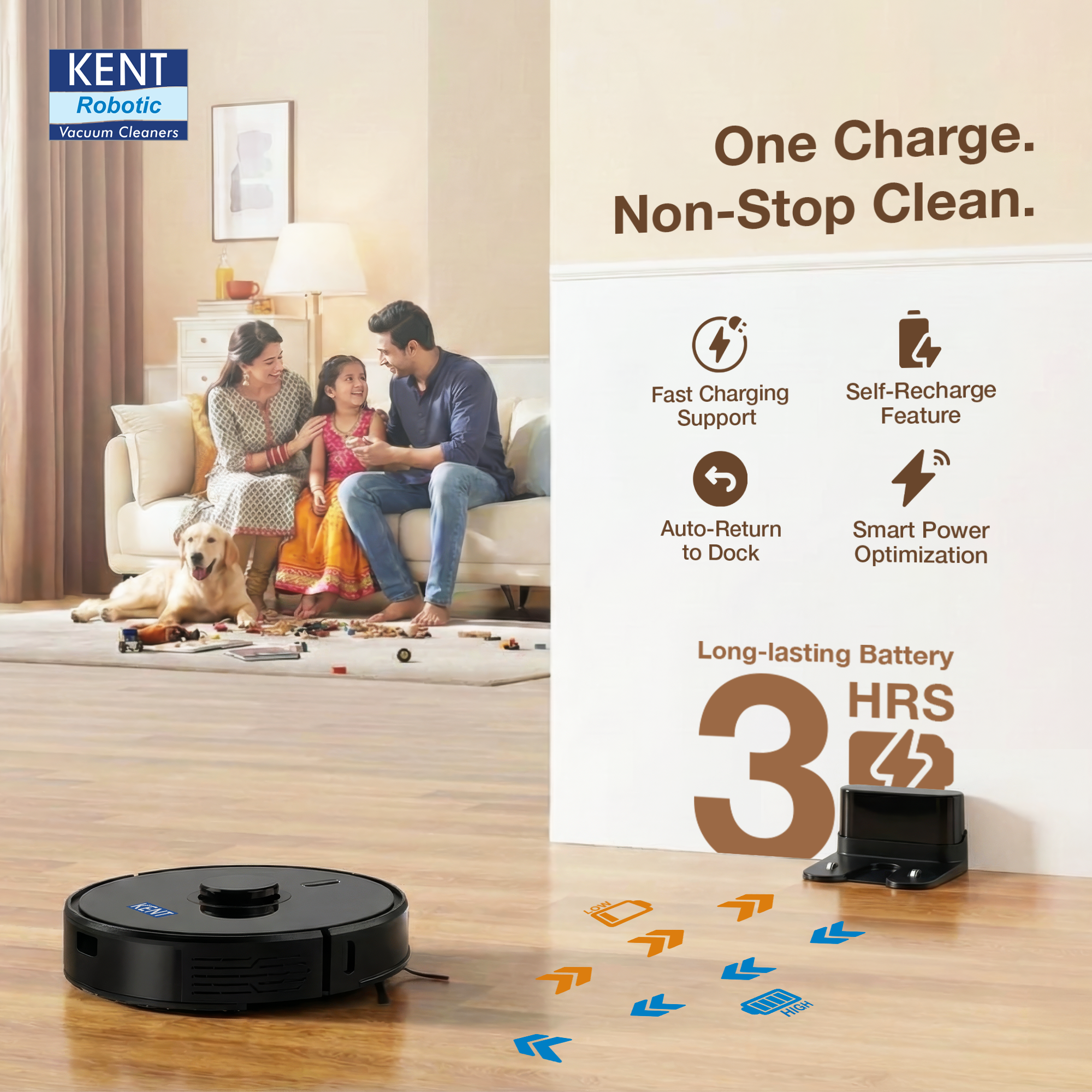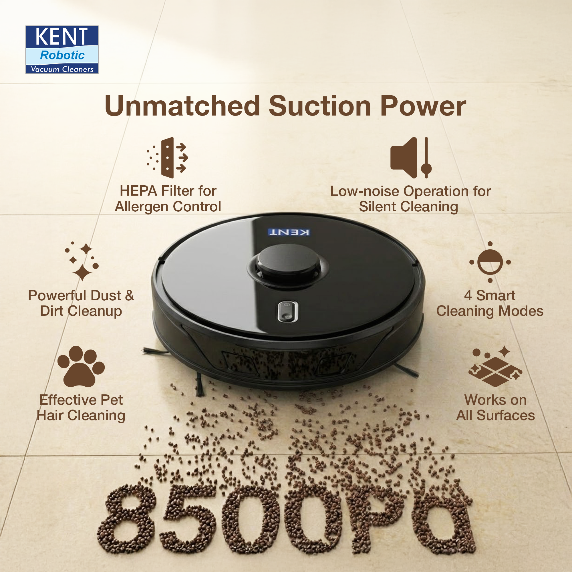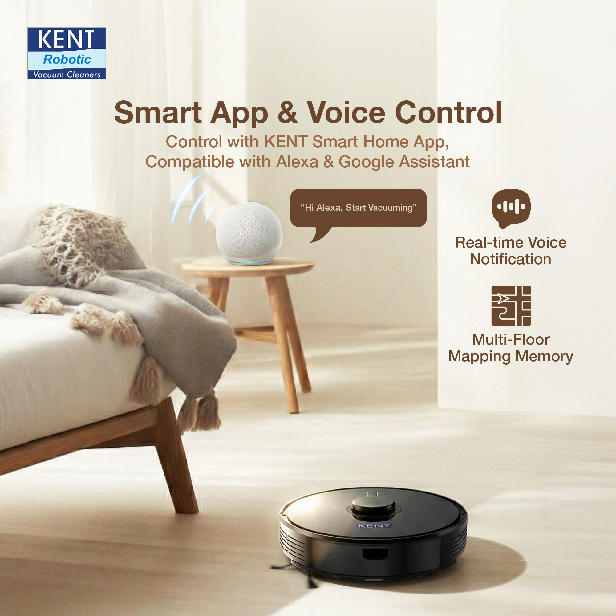 - Smart App & Voice Control- Control every cleaning detail remotely with the KENT Smart Home app - schedule, track, customise, and adjust settings with ease. Plus, enjoy hands-free convenience with seamless voice control.