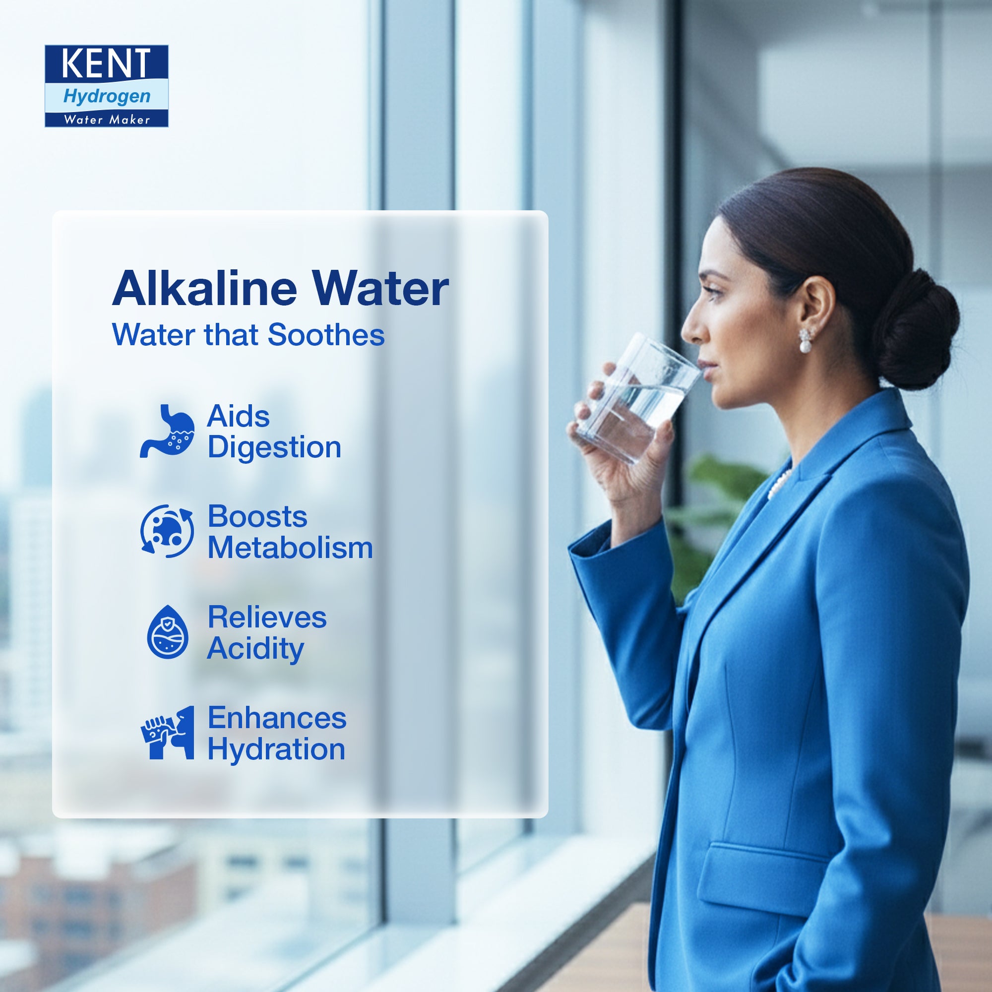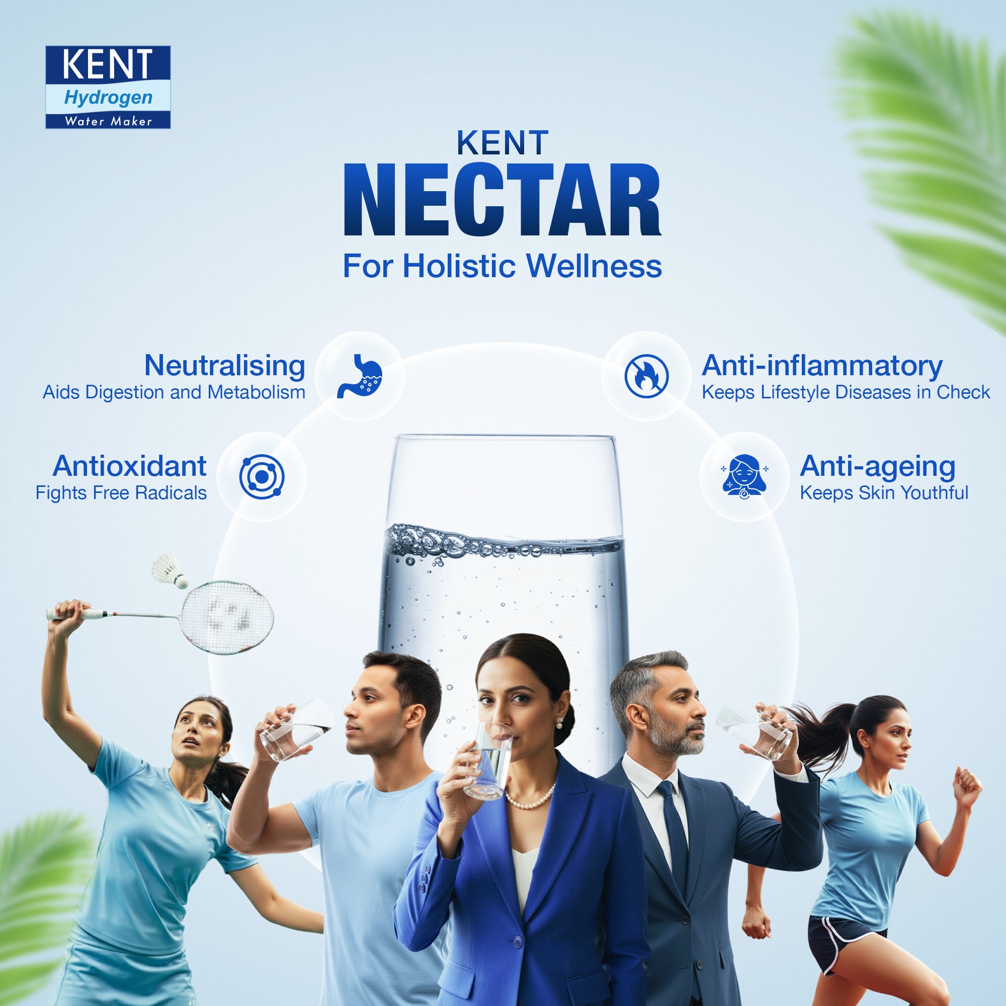 - Benefits of Hydrogen- Hydrogen rich water is a natural antioxidant which provides anti-ageing properties and ensures glowing skin, keeps lifestyle diseases like obesity & diabetes under check. It also boosts immunity & energy.