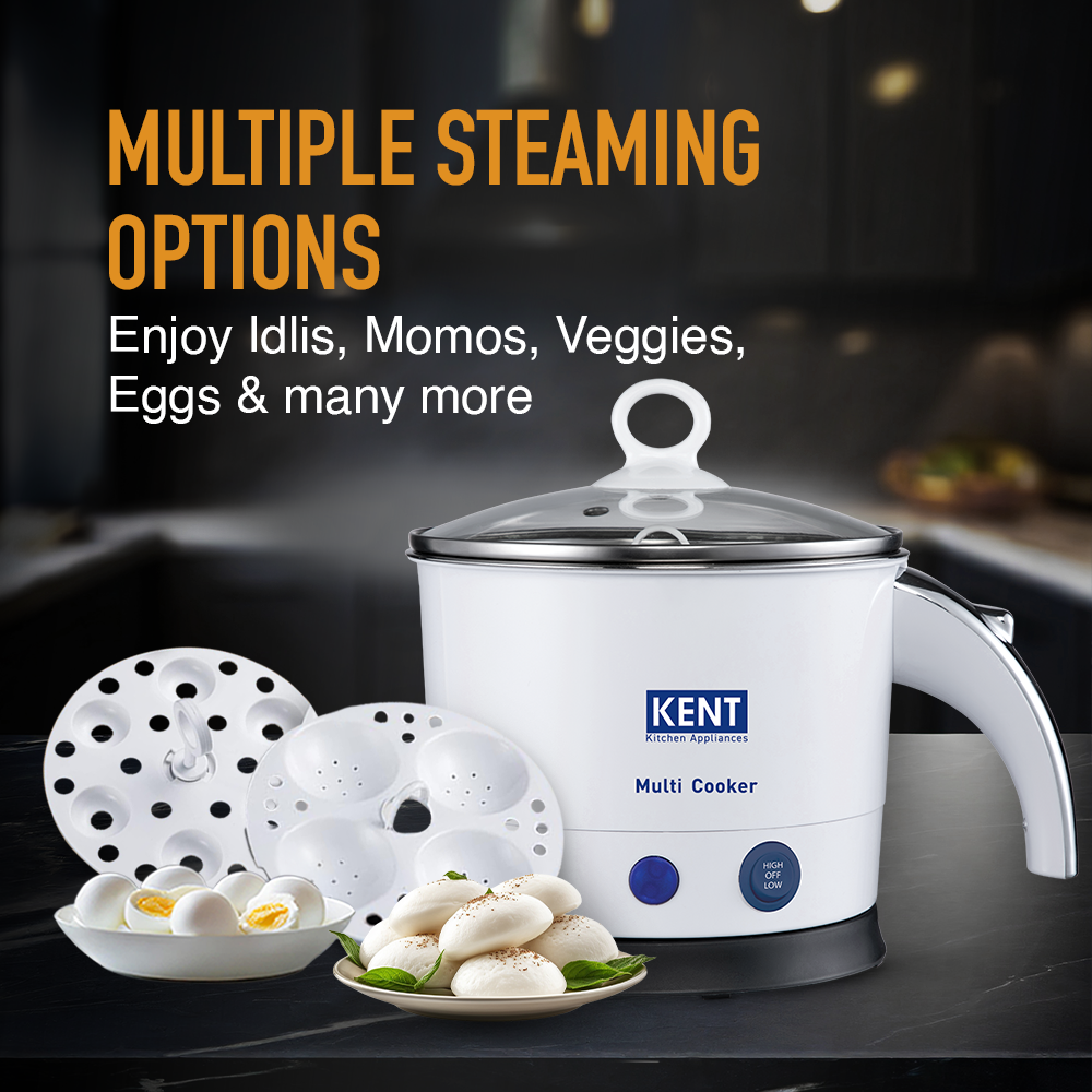 - Portable and Easy-To-Use: KENT Multi Cooker has a compact design, so you can carry or store it anywhere. It is easy-to-clean and comes with accessories like egg boiler tray and idli maker tray, so you can try new delicacies.