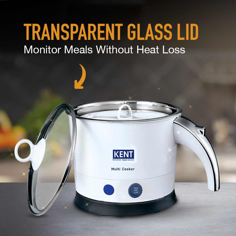 - Stainless Steel Inner Pot & Transparent Glass Lid: KENT Multi Cooker features a high-quality SS inner pot that’s sure to stand the test of time. The transparent glass lid lets you keep a check on cooked items. Now make idlis or steam vegetables in a convenient and hassle-free way.