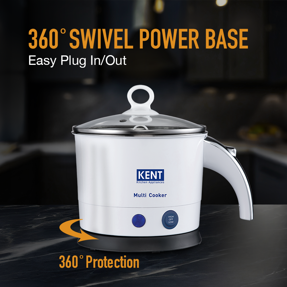 - Auto Turn-Off Feature & Cool-Touch Handle: KENT Multi Cooker ensures maximum safety and convenience while cooking with its efficient auto turn-off feature and a cool-touch handle. It also features a swivel power base.